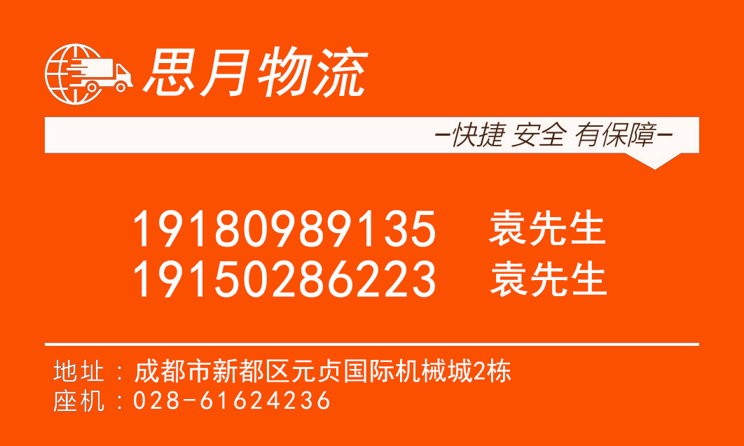 成都思月物流有限公司經過多年的運營和發展,公司擁有各種類型的車輛:平板車、高欄車、廂式車、半掛、高低平板車、危險品運輸車、大件拖掛車等幾百輛,車長分別有:3m、5m、7.6m、8.6m、9.6m、12.5m、15m、16m、17.5m等,公司使用先進信息電子商務系統GPS監控,可以隨時為客戶查詢貨物到達詳細地址,24小時全程跟蹤。認真對待每一位顧客,做到好、守時、守信.守時間 、"誠信為本、客戶至上、運價合理、平安快捷"的服務宗旨;是大家放心選購的物流公司。